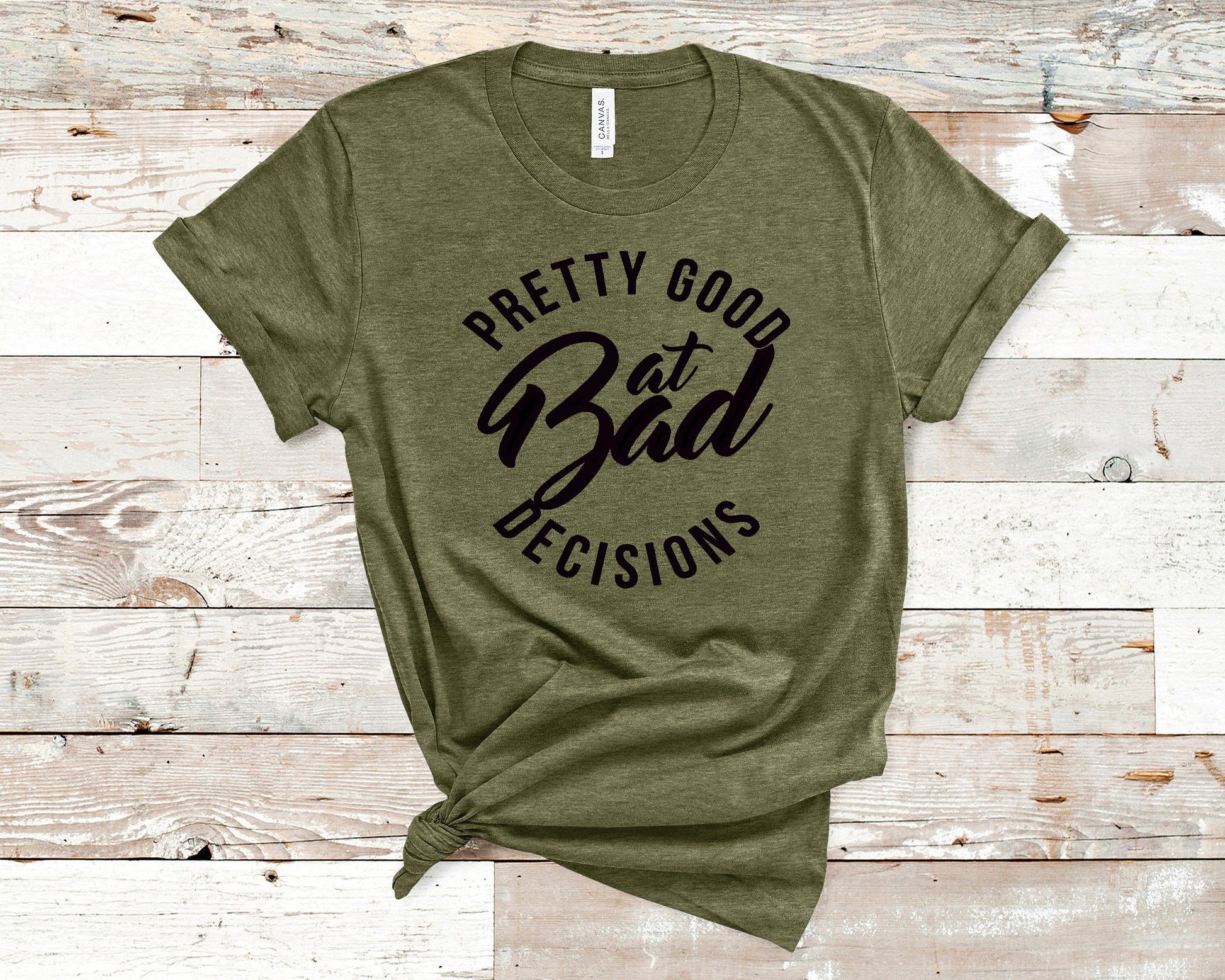 Features the words 'Pretty Good at Bad Decisions'