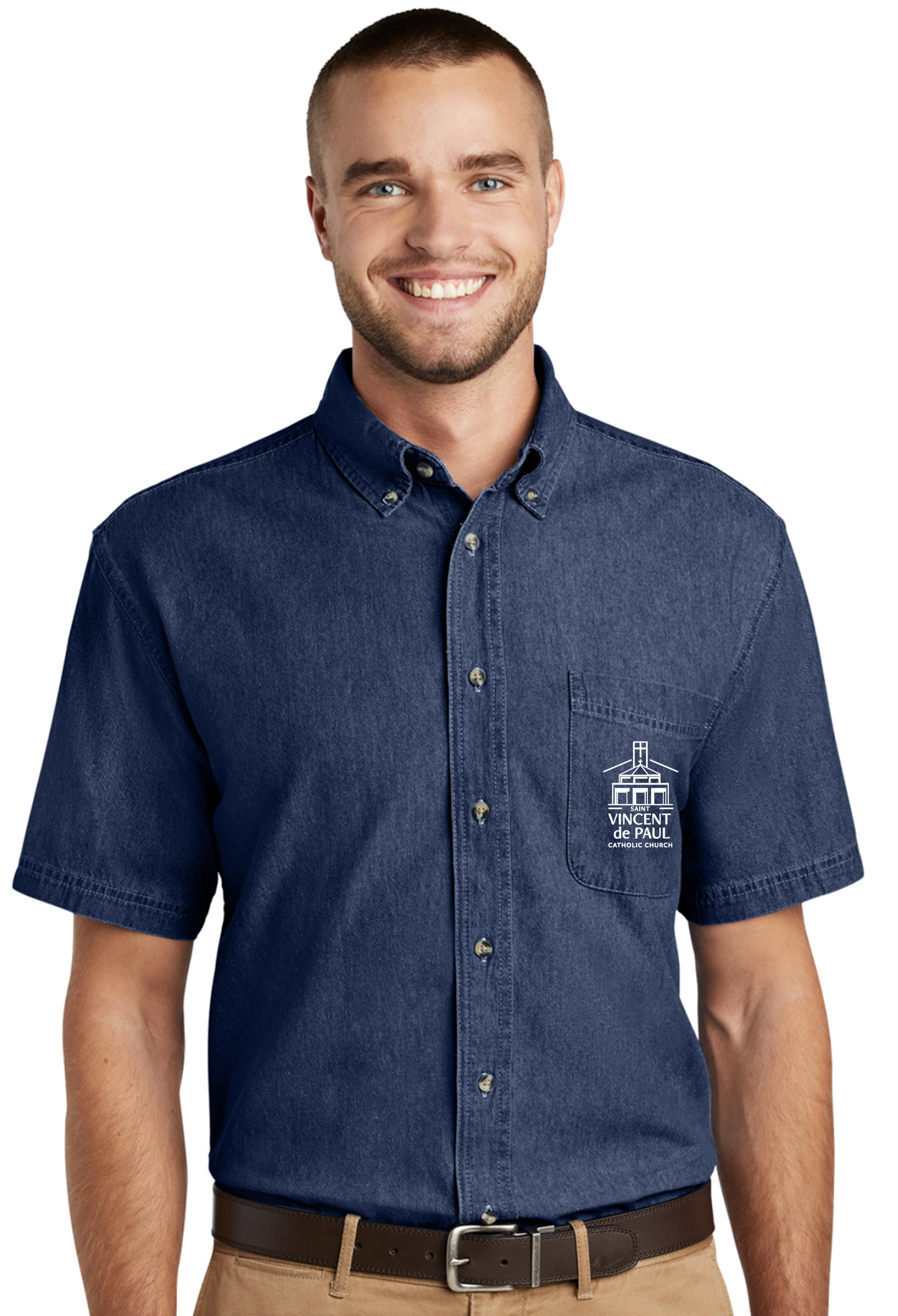 Short Sleeve Denim Button up w/ Embroidered logo - MENS